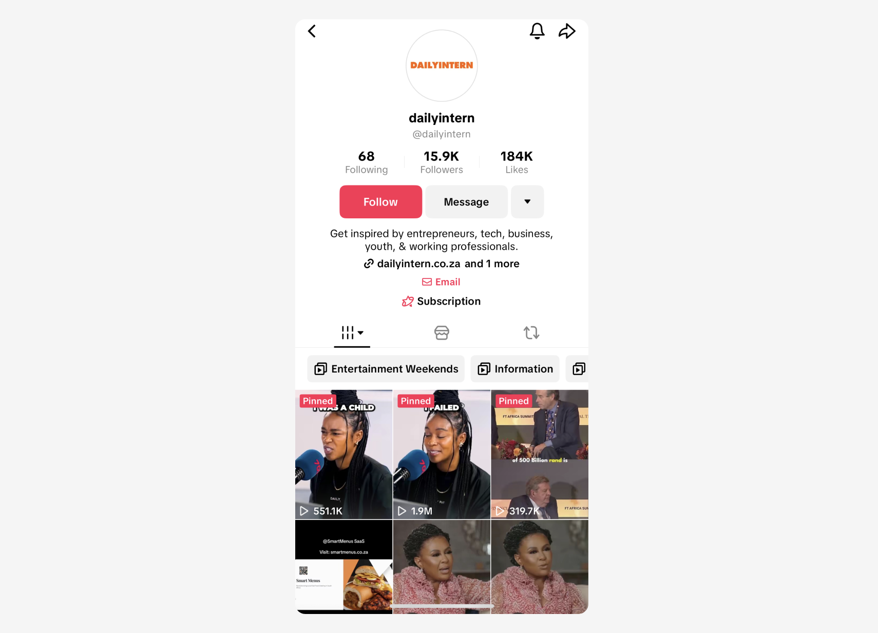 Today, DailyIntern has more than 14,000 followers on TikTok (almost 16k at this point with millions of views), and the number keeps climbing. For Samuel, that’s more than just a metric; it’s proof that consistency and the right tools can turn an idea into something real.