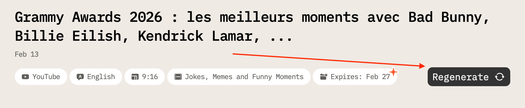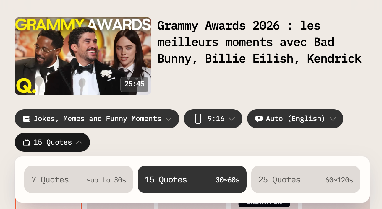 There are multiple prompts that might work extremely well for TikTok fan edits. You can try a few — Viral Clips, Memorable Phrases or Jokes, Memes, and Funny Moments — and then select what works best.