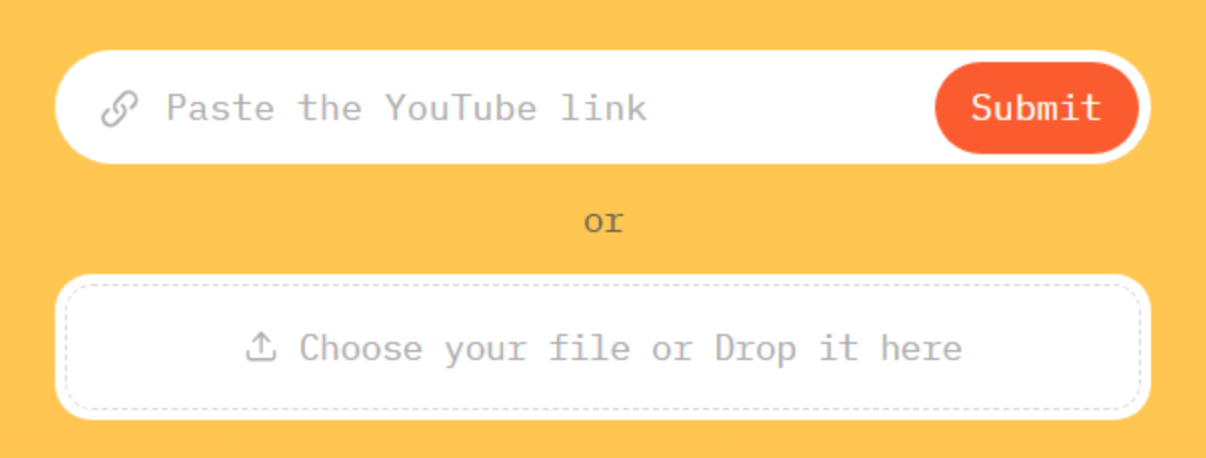 - Upload your full video. Add your lesson, webinar, livestream recording, or talking-head video to AI Video Cut. You can add it either as file or a YouTube link.