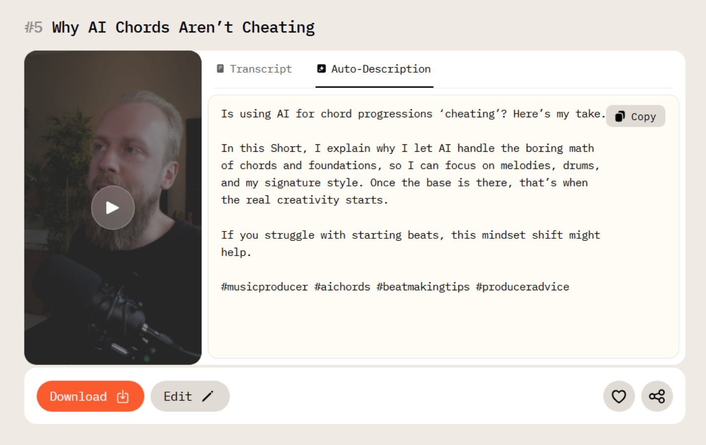 - Choose the best clips. Review the suggested cuts and keep the ones that feel the most engaging, insightful, or entertaining.