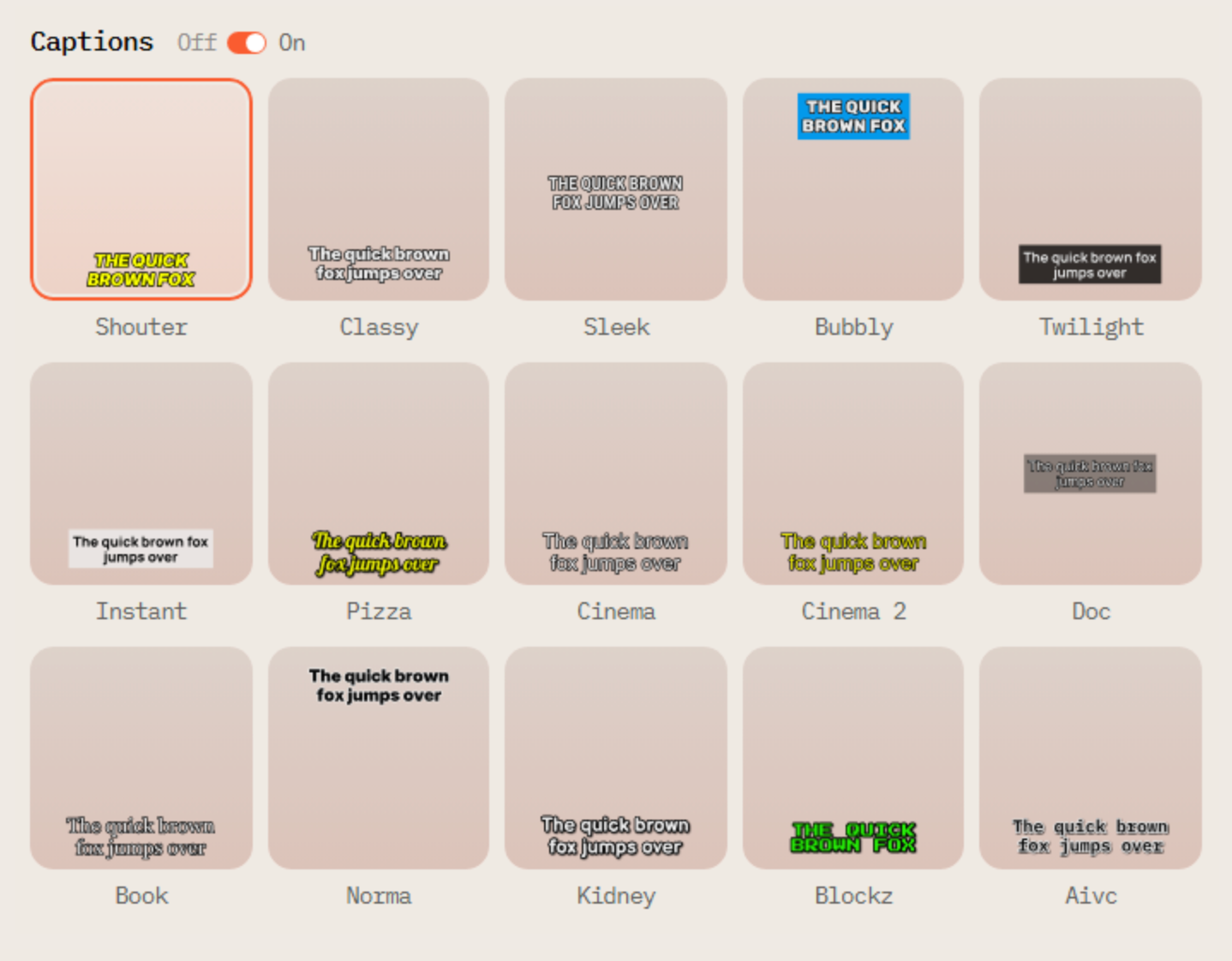 - Make sure your clips have captions. Choose one of the caption styles that fits your video best. If you prefer a clean text-free look, toggle the captions off.